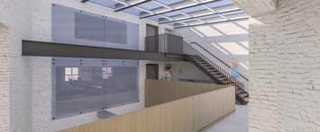 Bachelor teases on redesigning a former industrial laundry facility. Creating a new transparent, flexible space for student. A central HUB between Thomas More and the city center of Mechelen.